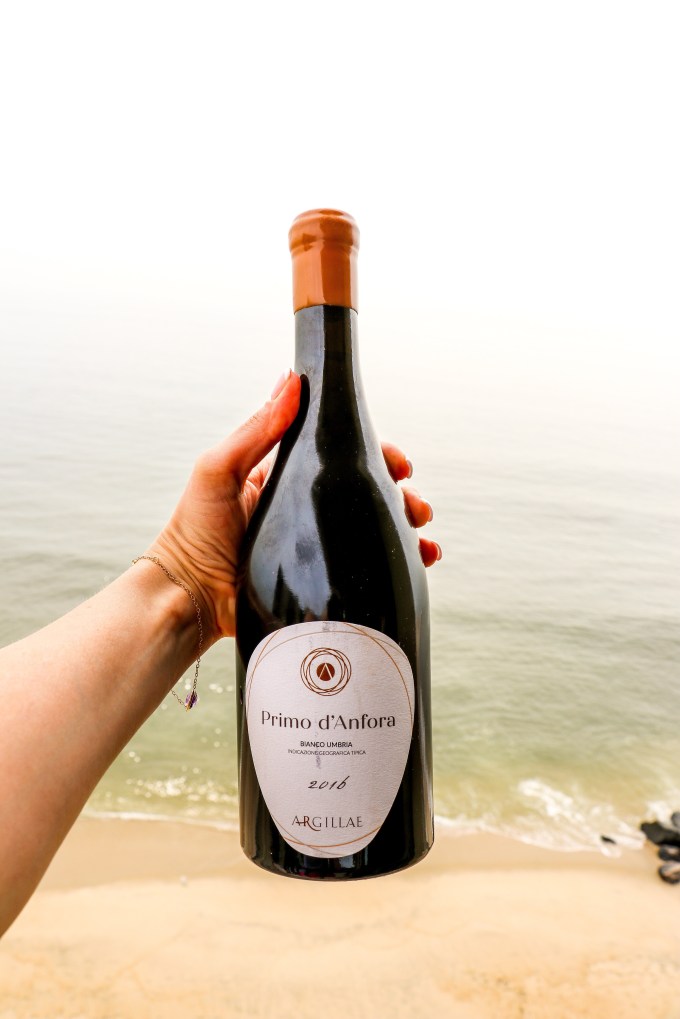 3 different amphoras for 3 different grapes: Grechetto, Drupeggio, Malvasia. Meticulous pruning where even slightly damaged berries are removed.