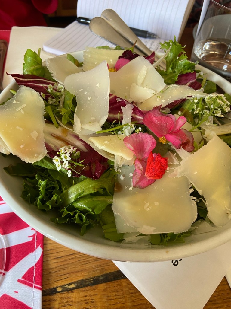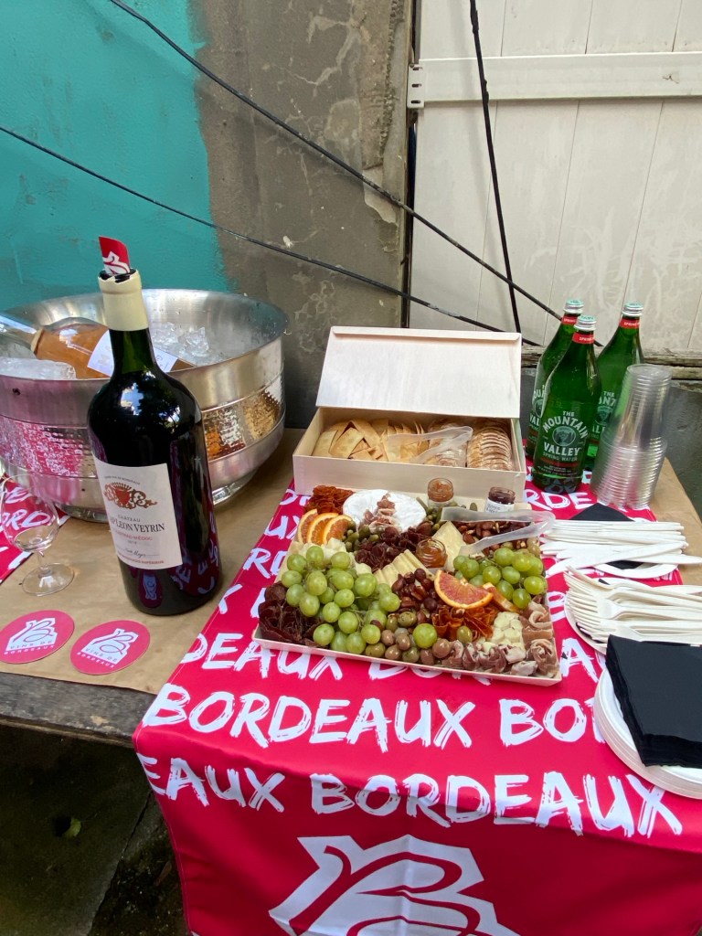 This is where we tried a wine from Sylvie’s portfolio: A lovely pale AOC Bordeaux Rosè from Entre Deaux Mers. This wine has a contemporary label, which reads “Made with Love” and it shows! The Courselle family has ran Chateau Thieuley since 1950. Sylvie works alongside her sister, Marie. Their estate is bee friendly, sustainable, and has acquired several certificates demonstrating these environmental measures. The Rosè paired nicely with the beautiful cheese and charcuterie board before us. It demonstrates notes of red fruits and some minerality. A Rosè for anytime of year. 65% Cabernet Franc, 30% Merlot, and 5% Petit Verdot. Aged on lees. They also produce a Clairet, which is a deeply pigmented Rosè or even by some assessments a very pale red. Certainly worth seeking out to try something new.