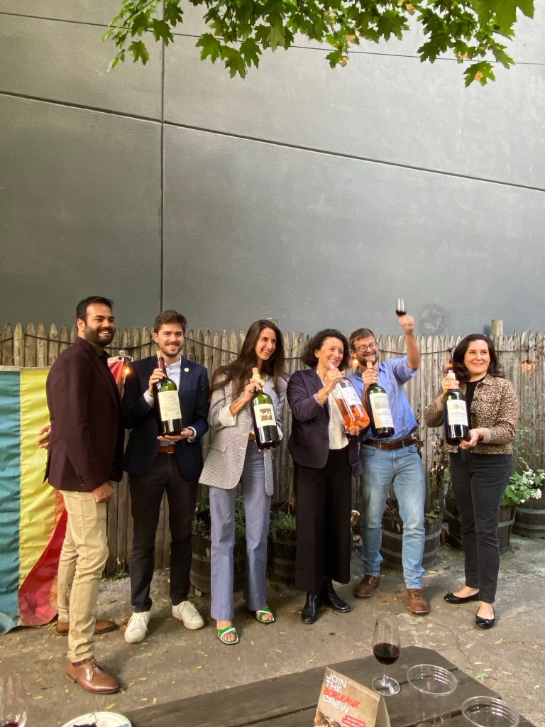 We began our tour at Vin sur Vingt, a popular NYC wine bar chain, at their West Village location where we met Kunal and Pierre. Although Kunal represents a chateau that makes predominantly sweet wines in Sauternes the example he brought today showcased another side of Sauternes: Dry Whites. The AOP Bordeaux Blanc offered pretty aromatics with white flowers, citrus, and stone fruit. It’s a fuller bodied white wine that is incredibly food friendly, 90% Sémillon with 10% of Sauvignon Blanc. It paired well with a goat cheese crostini we were served.